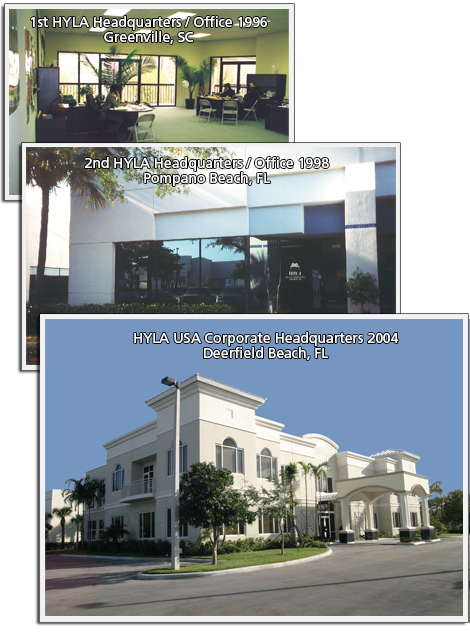 Within only two years, the business had experienced such growth that they relocated to a larger office in South Florida. Utilizing their expertise in the industry, and with the intentions of optimizing workflow, Mr. & Mrs. Gassmann designed and built the new and final home for the HYLA USA Corporate Headquarters. Relocating to it in 2004, the Headquarters is a prestigious 11,000 sq ft building located in Deerfield Beach, FL.